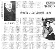 料理家、文筆家の辰巳芳子さんの「この人に聞きたい」。4回目・最終回は、憲法9条への思いを中心にうかがいました。