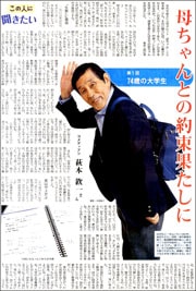 世代を超えた人気タレント"欽ちゃん"こと萩本欽一さん。その行動力にはいつも驚かされます。この春からは大学1年生。どんな学生生活なのか。"いつも元気"の根っこにある人生哲学とは-。授業を終えたばかりの欽ちゃんを訪ねました。