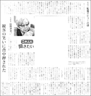 日本を代表する俳優、仲代達矢さん(85)。主演の無名塾公演「肝っ玉おっ母と子供たち」(作・ブレヒト、演出・隆巴)が全国巡演中です。思いを聞きました。
