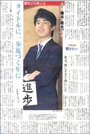 10月に新人王戦で史上最年少の16歳2カ月で優勝した将棋棋士の藤井聡太七段。将棋にかける思いや新年の抱負を聞きました。(3面)