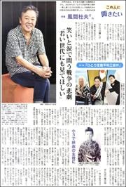 古希を迎え、ますます活躍する風間杜夫さん。26日からの「ひとり芝居平和三部作一挙上演!!」にかける思いを聞きました。(3面)