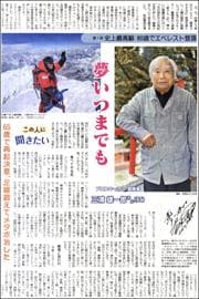 70、75、80歳と3度のエベレスト登頂を果たし、人類の限界に挑戦し続けるプロスキーヤー・冒険家の三浦雄一郎さんに話を聞きました。(3面)