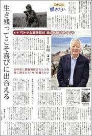 報道カメラマンの石川文洋さんは、数々の戦争や紛争地を取材してきました。近著『ベトナム戦争と私 カメラマンの記録した戦場』では、戦争の実態を生々しくつづっています。(3面)