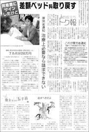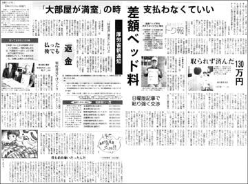 「大部屋がいっぱい」という理由で差額ベッド料を請求できない。厚生労働省の新通知を特集した日曜版(18年5月20日号)に多くの反響が寄せられました。紙面を活用して、いったん支払った差額ベッド料を返金させた事例が相次いでいます。
