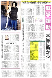 子どもたちが小中学校に新入学、進級する4月を迎えました。学用品や制服、給食などの費用負担は大変です。そんなとき知っておきたいのが就学援助制度です。(32面)