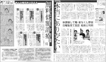「妹夫婦は日曜版の記事で命を救われました」-こんな話が編集部に寄せられました。神奈川県内に住むある夫婦。昨年末、家賃が払えずアパートを追い出されました。病気を抱え、野宿せざるをえなくなります。投げやりな気持ちを救ったのは姉から送られた日曜版の記事の切り抜きでした。