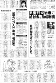 集団予防接種の注射器使い回しでB型肝炎ウイルスに感染した被害者は40万人に上るといわれます。B型肝炎訴訟の原告団・弁護団の運動が実り、給付金や医療費助成制度ができました。