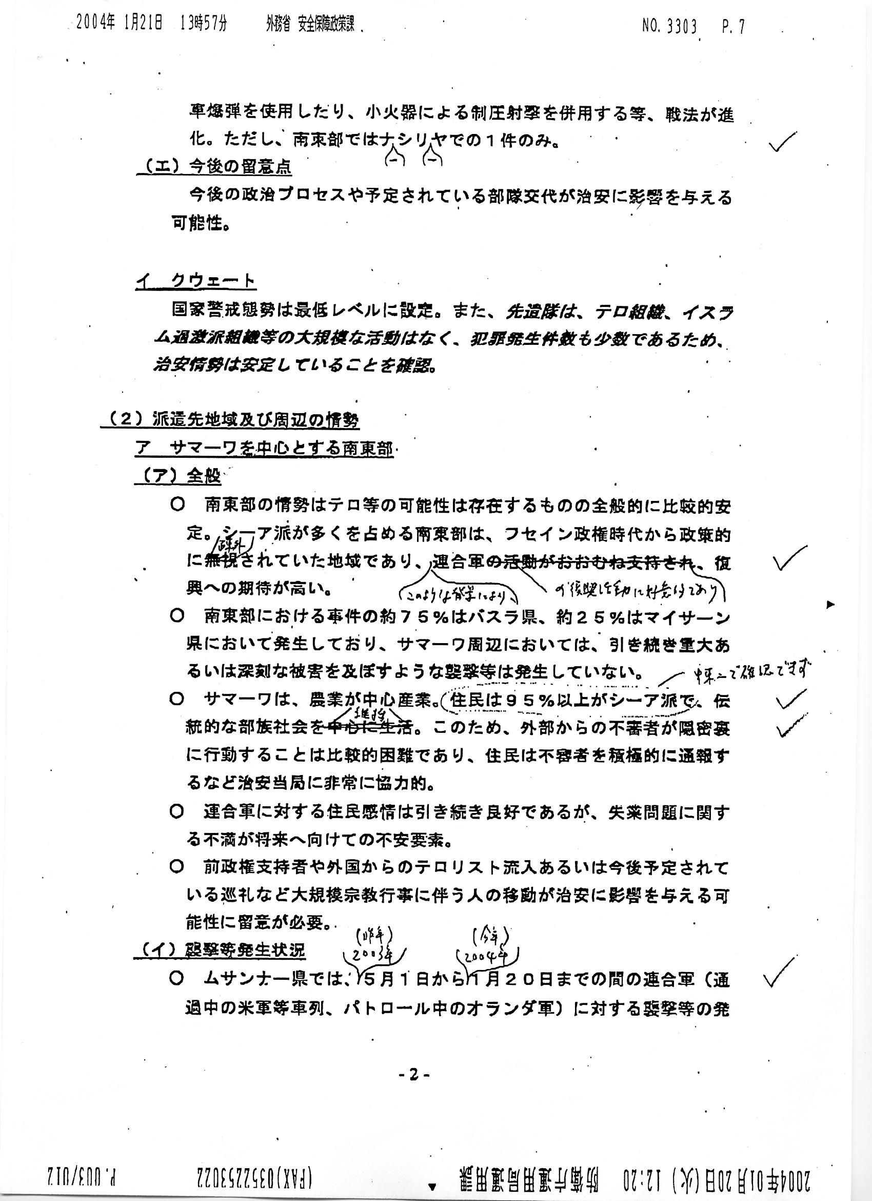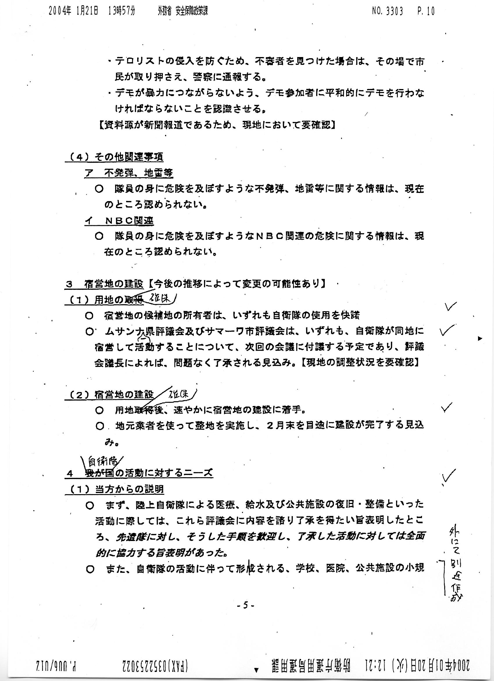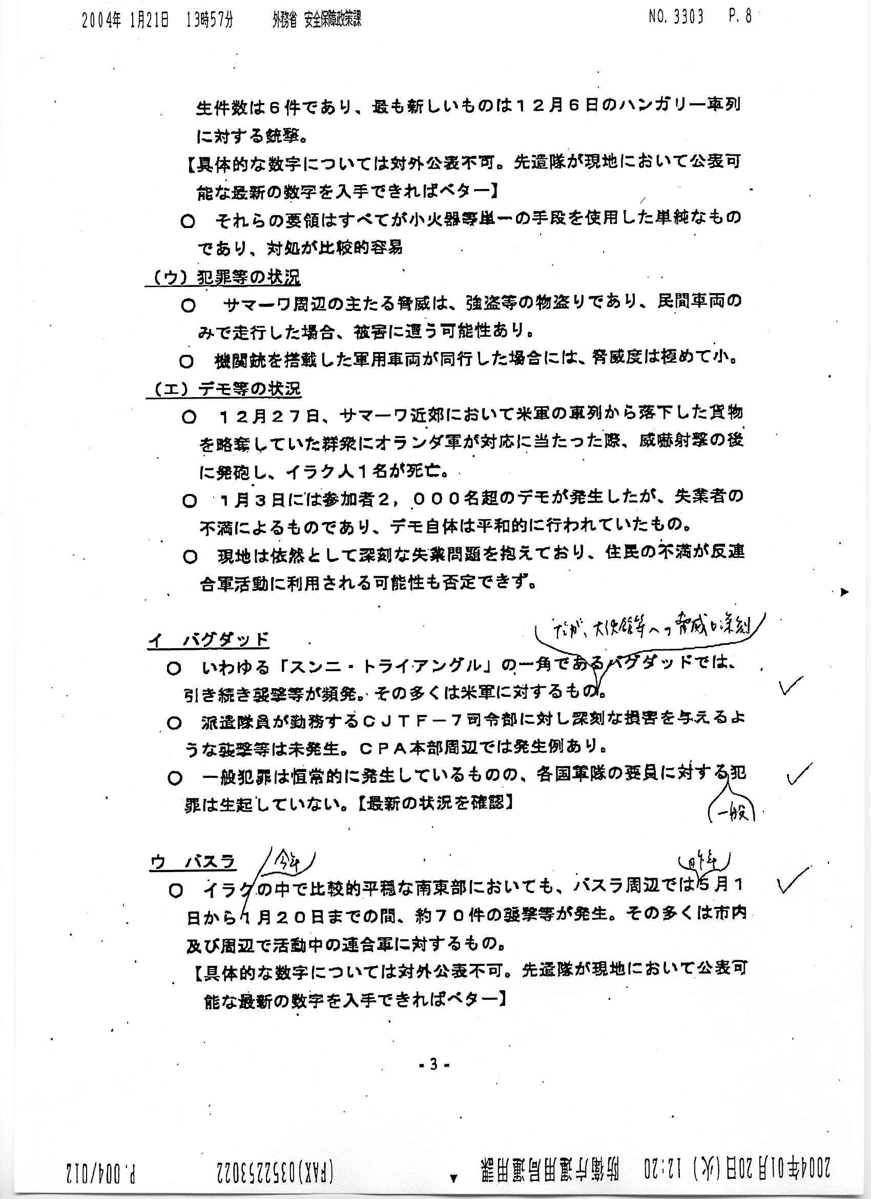 “サマワは派兵歓迎”演出を/政府、先遣隊に情報集め指示/赤嶺議員 内部文書を示し追及/報告書をあらかじめ準備(1/29)