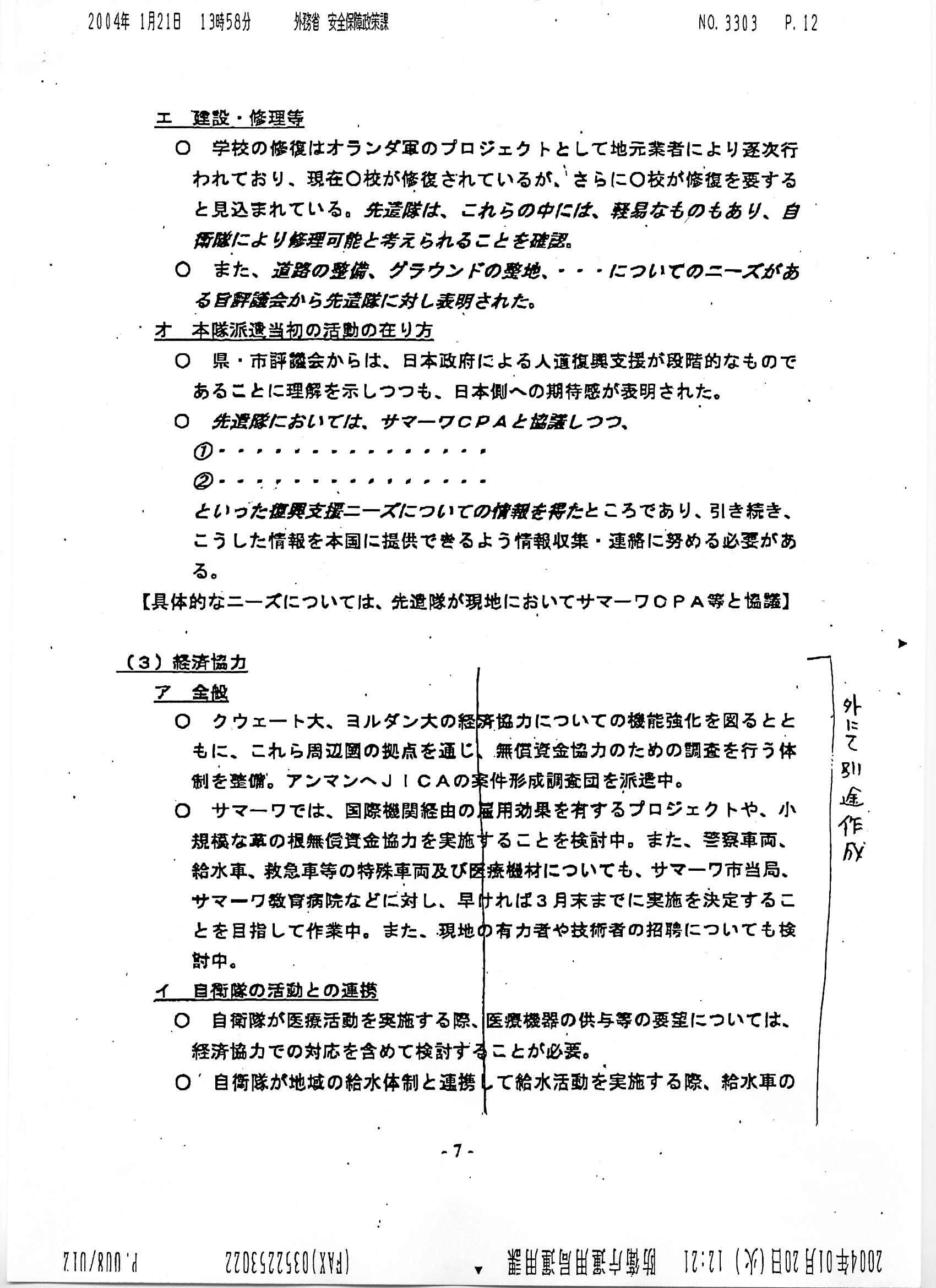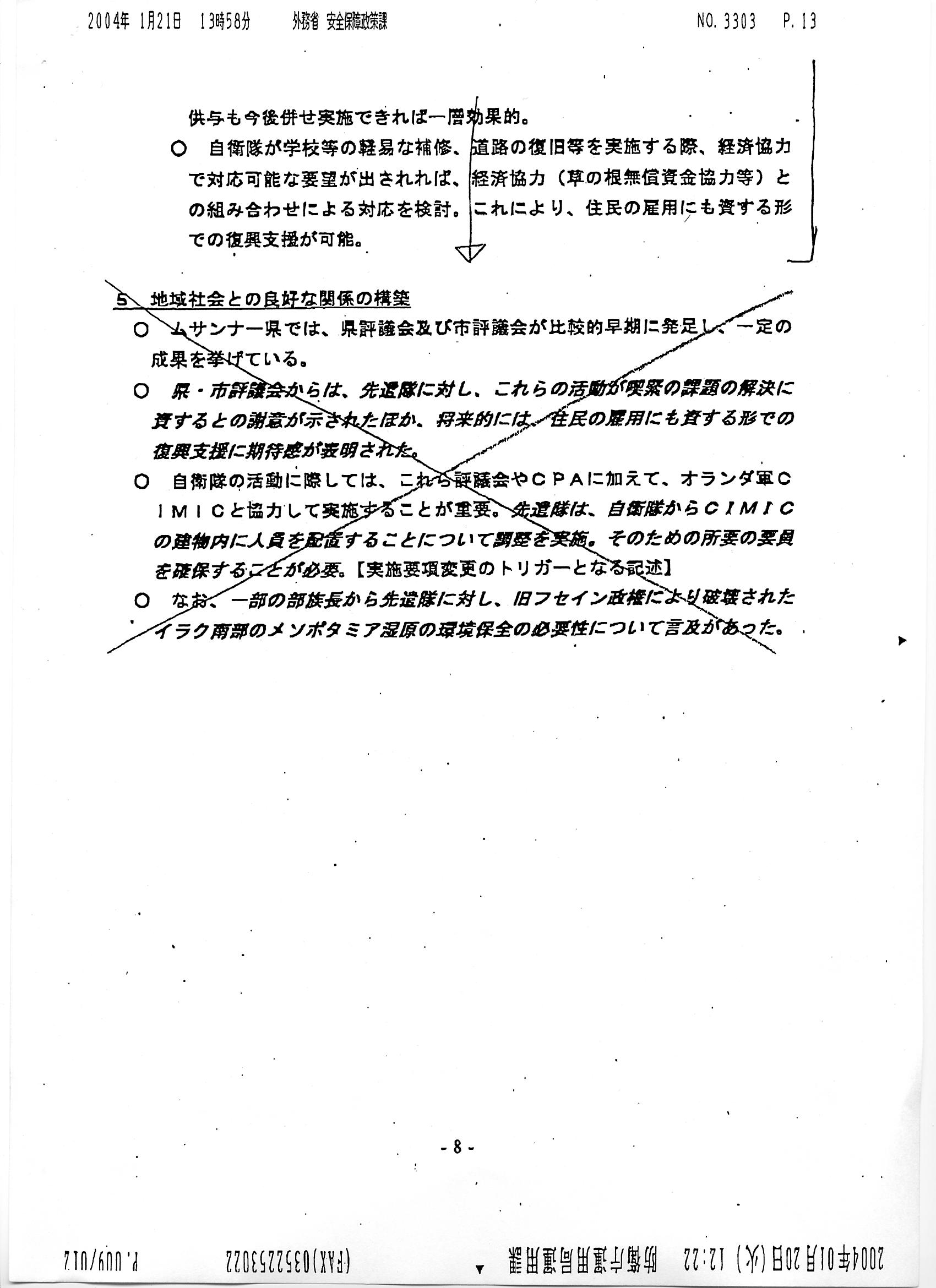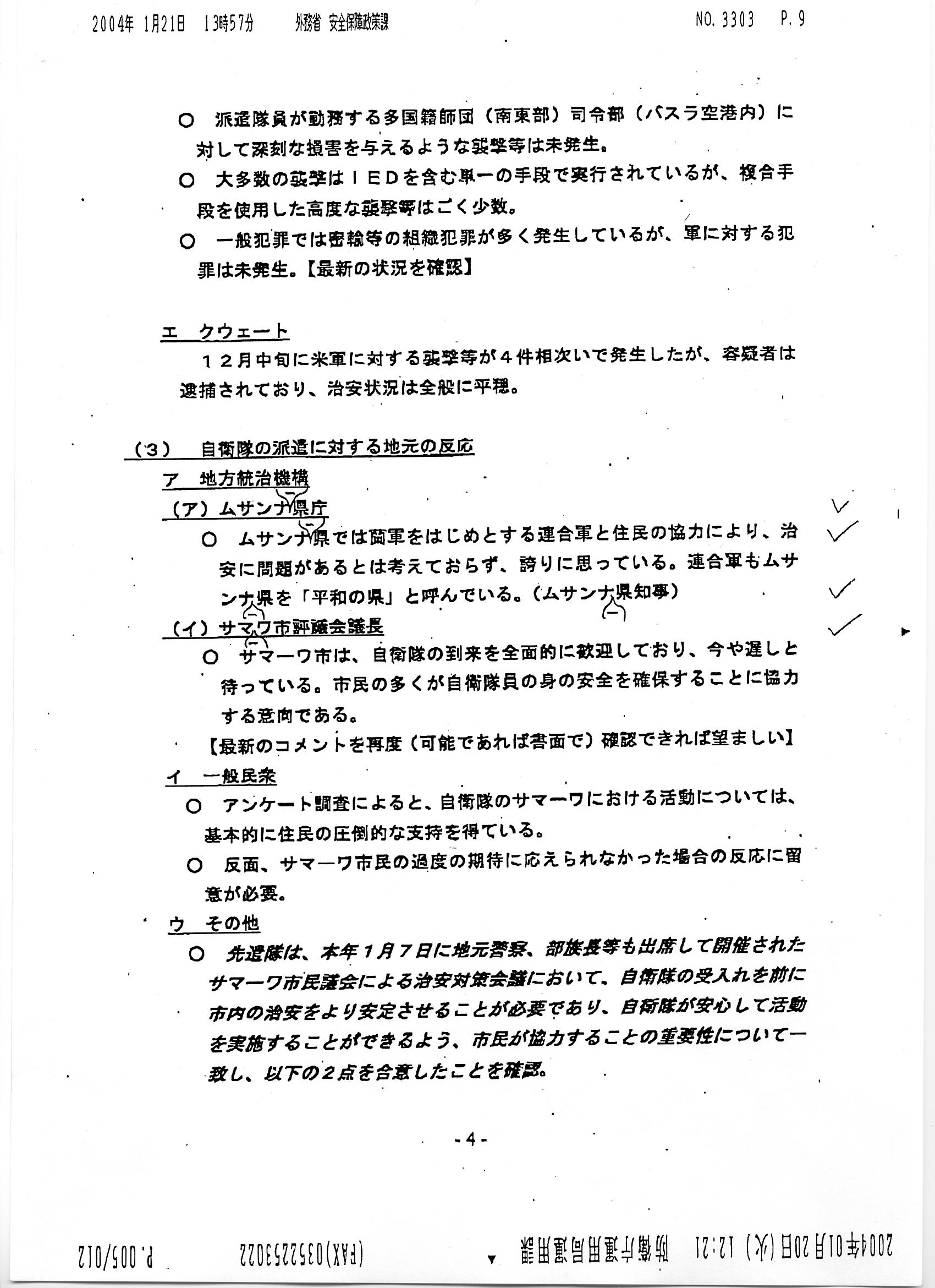 「送信記録残っていた」/イラク先遣隊への情報操作指示文書/八田ひろ子議員追及に防衛庁長官認める(2/4)
