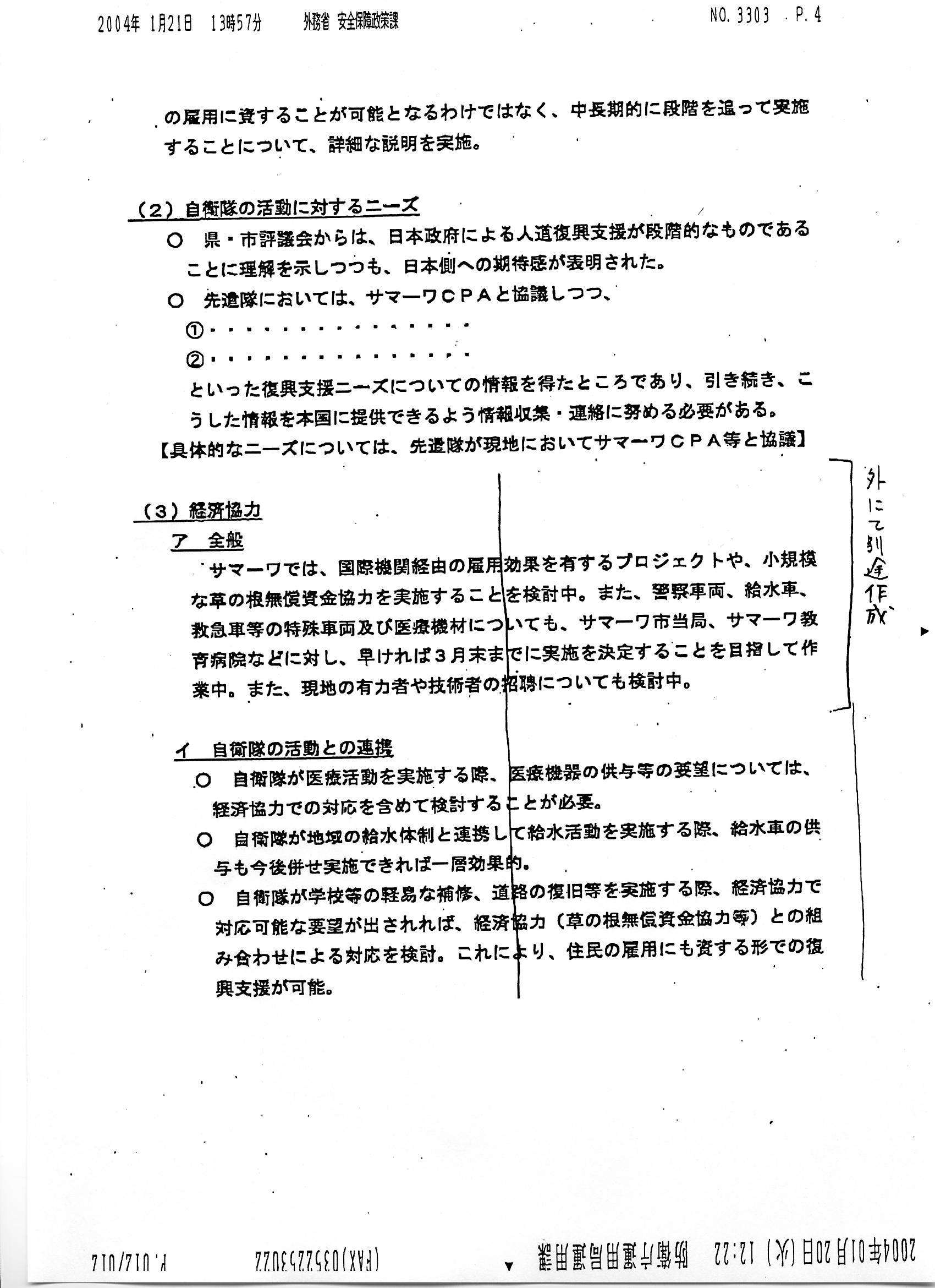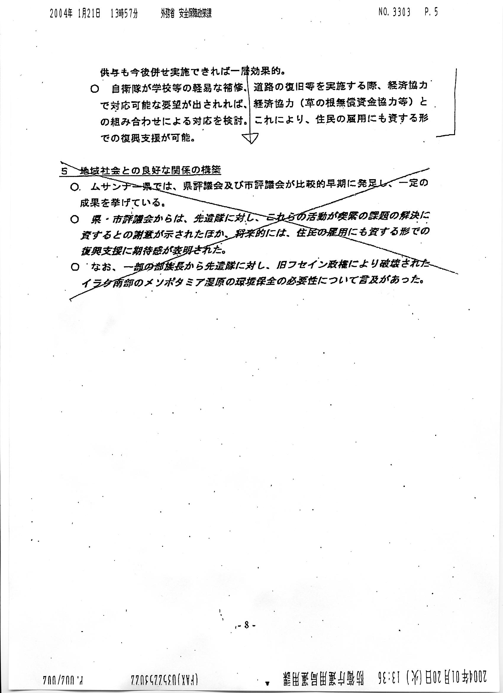 「送信記録残っていた」/イラク先遣隊への情報操作指示文書/八田ひろ子議員追及に防衛庁長官認める(2/4)