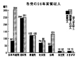 上田 たしかに、ここ10数年来、日本共産党の政治資金収支報告は他の党をしのいで、第1位になっています。その理由は、毎年のことですが、わが党の場合、日刊、週刊の「しんぶん赤旗」(機関紙)、雑誌、書籍・パンフなどの事業収入―一般にいう「売り上げ」―が、他のどの党よりも多く、またその事業経費―用紙、印刷、輸送、編集などの諸経費―が、収入の7割以上を占めるということにあります。制約なしに使える活動資金を「純収入」としますと、日本共産党の場合は総収入の27%の82億円です。これにたいして自民党は244億円、新進党は122億円となります。(グラフ参照)