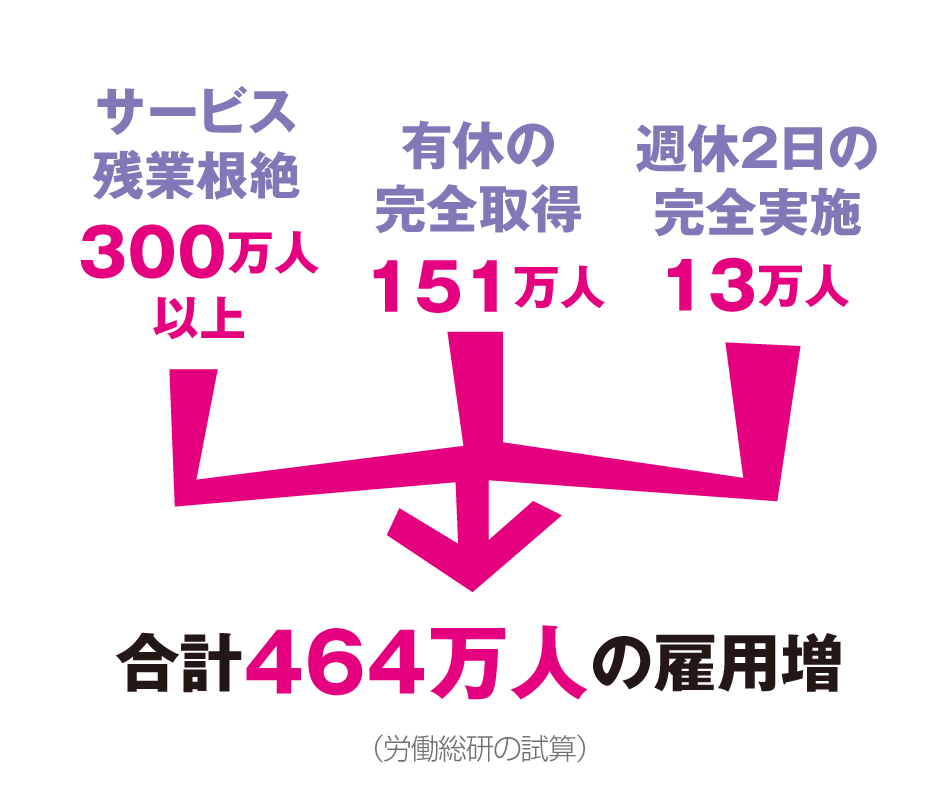 労働時間を短くし、賃金をあげて経済は大丈夫? 残業時間を大幅に削れば、その分、社会全体で雇用がふやせます。 非正規から正規へ転換し、収入が増えれば、消費も上向きます。内需が活性化し、企業にとっても成長のチャンスがふえる。働く人たちのモチベーションもあがり、業績向上の道もひらかれる───これこそ本当の経済好循環です。