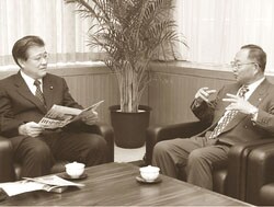 田中町長は、選挙戦での苦労などを紹介するなど、なごやかに懇談しました。