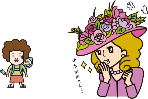 育子: ケンリーちゃんは、はるばるヨーロッパの方からやってきた、女性政策担当のカクサン部!セカンド・メンバーや。しっかし、えらいハデハデな帽子被っとるなぁ。チョウチョさんも遊びに来てるで。おめでたい感じやな~。