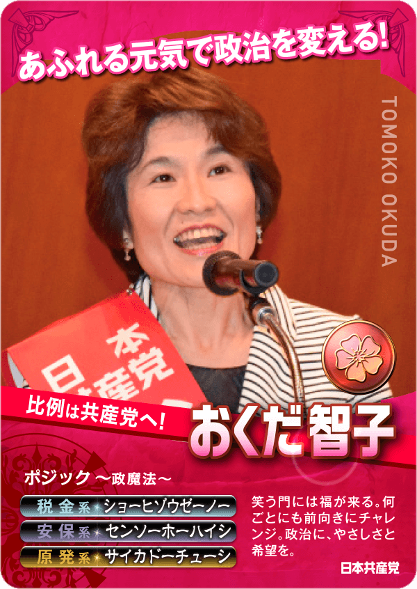 日本共産党徳島県委員会は、参院比例区に前県議の古田美知代氏(67)を擁立すると発表しました。県内で活動します。(4月13日)