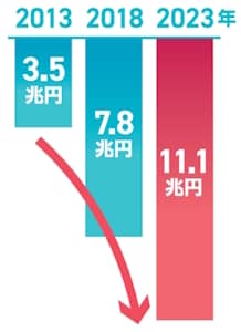 2013年3.5兆円、2018年7.8兆円、2023年11.1兆円