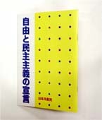 『自由と民主主義の宣言』 日本共産党中央委員会出版局発行 1996.8刊/定価(税込)153円 <内容> 政治革新、独立・民主日本、そして社会主義日本へ。社会進歩の道を歩むとともに、国民の自由と民主主義が拡大・充実。選挙での政権交代、人間の生きる権利の保障、ファッションの自由、私有財産の保障、農業や中小商工業の個人経営など、日本の前途について多くの国民の関心と疑問にこたえる絶好の一冊。 |