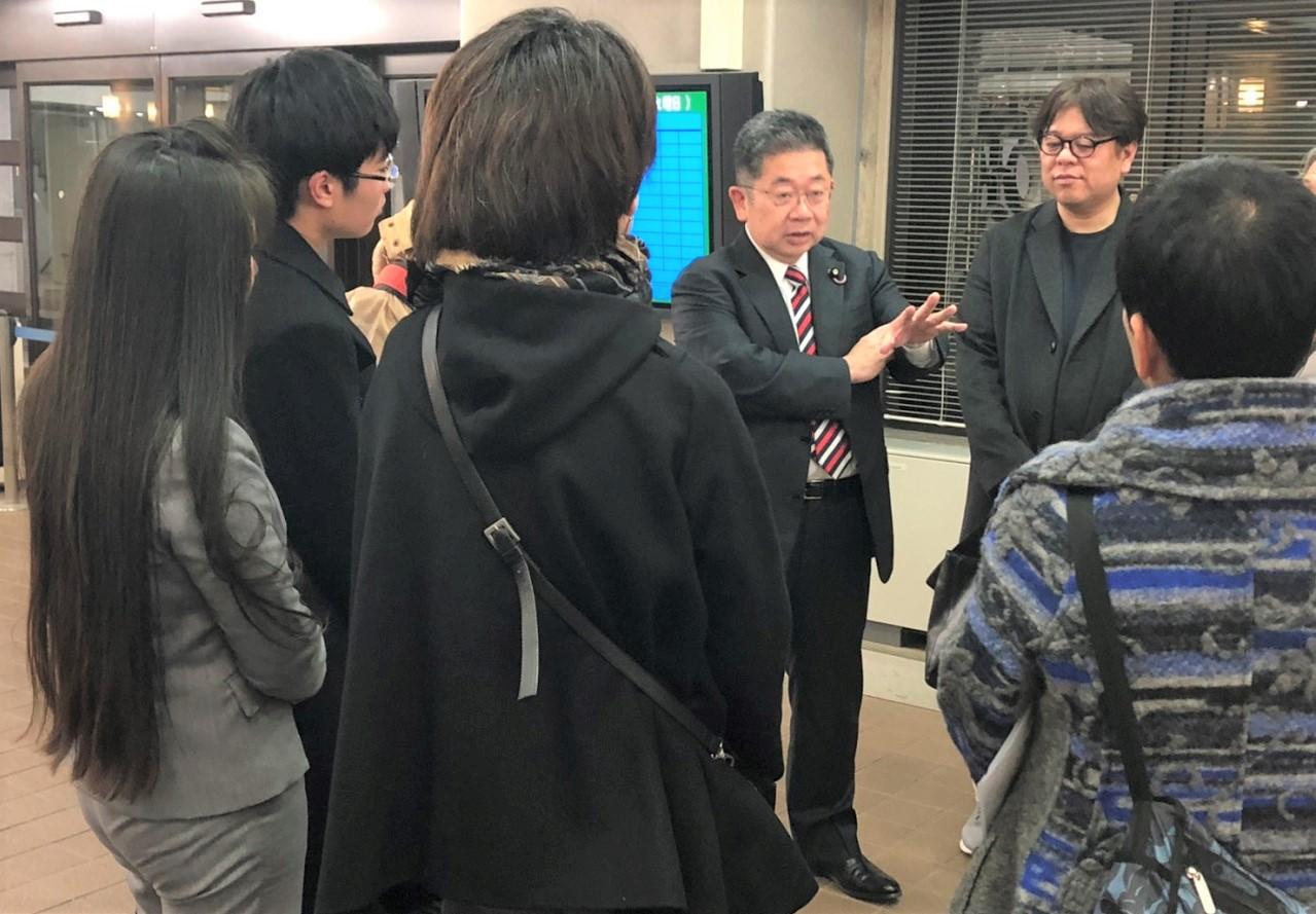 外に挨拶に出てきてくれた、たつみ議員や小池議員とも、短時間でしたが交流できました。「今年連続する選挙で民主主義の力を見せたい」、「まともな国会にするため、参院選で必ず野党の議席を伸ばさなくては」など、参加者はそれぞれアツい思いを胸に、帰途につきました。