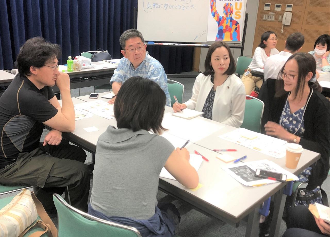 6月1日、JOIN USツアー2019〜市民とともにたたかうワークショップ@東京を開催しました。 最初に衆議院大阪12区補選で市民ボランティアとして活動した大阪のFusaeさんが報告。「街頭演説になるとスタッフも演説に聞き入ってしまっているが、通行している人に訴えるために、しっかりとチラシを配ったり、プラスターを掲げないといけない」「ボランティアやスタッフは常に市民から見られていることを意識し、どうすれば共感され、支持を広げられるのかを基準に行動してほしい」など具体的な活動を報告しました。
