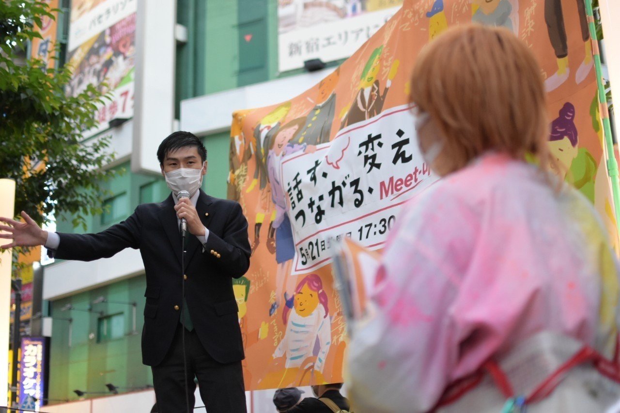 「Meet-up話そう、つながろう、変えていこう」街頭宣伝は、「政治集会は今まで素通りだった。かつての僕のような人たちに関心をもってもらえるように参加した」「DJかけてくれてたせいか、小池さんがラップやっているようにみえて楽しかった」など、共産党を「身近に」、気軽に楽しめる街頭宣伝になりました。5月14日のサポーター交流会に参加し、友人を誘って参加してくれた方も。10人以上のボランティアが駆け付けてくれ、東南口広場全体で対話と出会いの輪が広がりました。