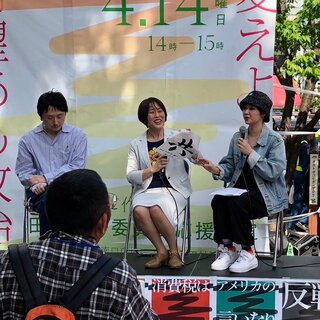 4月14日、JCPサポーター、市民と日本共産党の田村智子新委員長が、共同で「変えよう、希望ある政治へ~市民と共に作る、新委員長応援街頭宣伝」を新宿駅東南口駅前広場で行いました。色とりどりのプラカードやポスター、カラーチラシ、シール投票や大きなメッセージボードを掲げてボランティア12人を含む約40人が明るく、元気に街頭宣伝。お洒なプラカードやチラシ、和気藹々で柔らかい雰囲気に、たまたま通って聞いてるという方も沢山いました。