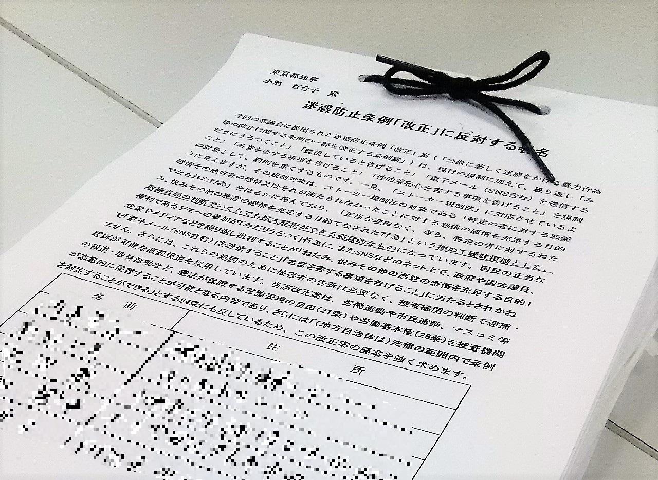 3,333筆の署名提出東京都迷惑防止条例改正反対