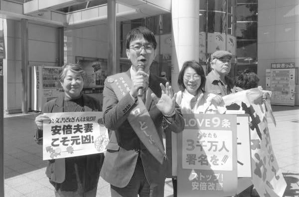 東京都町田市に住むNさんは、反原発の官邸前行動をきっかけに市民運動に参加。無党派市民として野党を応援しようと、選挙に関わるようになりました。昨年7月の東京都議選では初当選した日本共産党の池川友一都議を応援する勝手連「U1」で活動。今も町田市長選・市議選にむけて、駅前でプラカードをもつNさんの姿がありました。