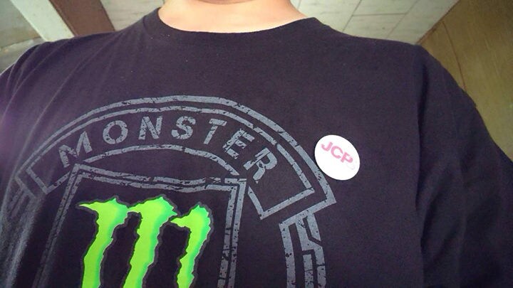 今日待ちに待ったJCPSの缶バッチが届き、さっそく服に着けてます👍