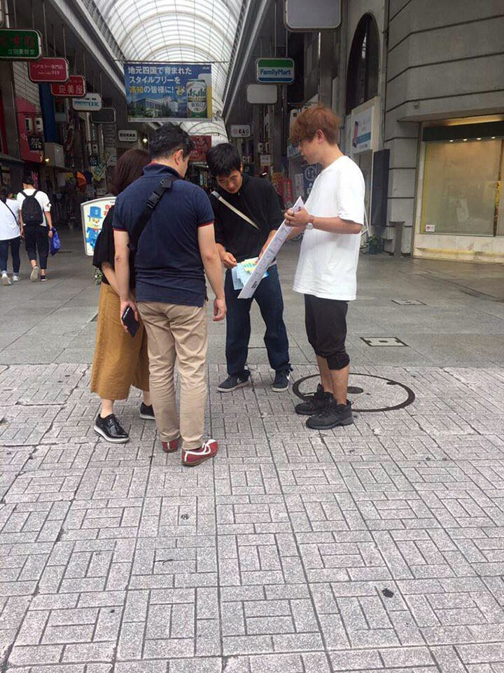 高知では青年サポーターズが6月から街頭アンケートにとりくんでいます。これまでに17回宣伝、525人と対話しました。