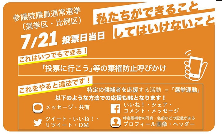 今回の参院選にあたっては、投票日当日の注意事項などを紹介した告知画像をつくり、提供しました。少しでも共産党のイメージが上がる宣伝のため、今後も微力ながら協力を続けていきたいと考えています。