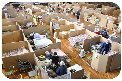 - 能登半島地震で学校の体育館に設置された避難所(「しんぶん赤旗」提供)