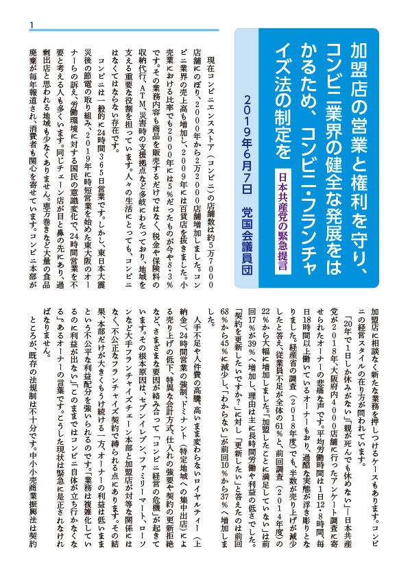 コンビニ・フランチャイズ法の制定を 日本共産党の緊急提言