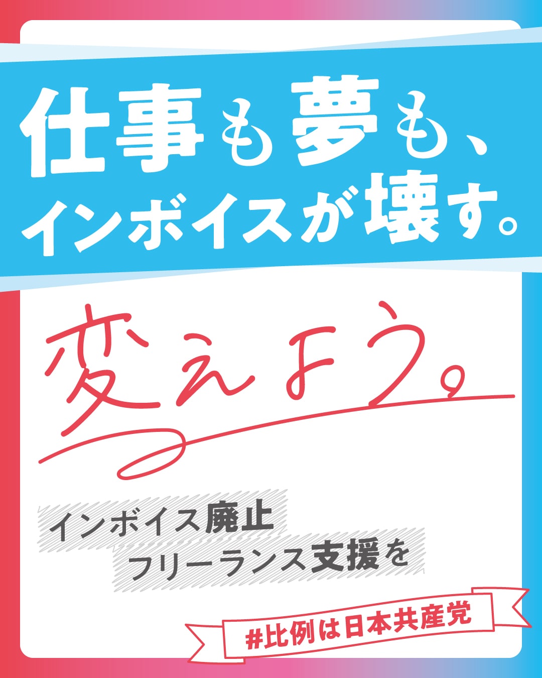 政策バナー:インボイス廃止、フリーランス支援を