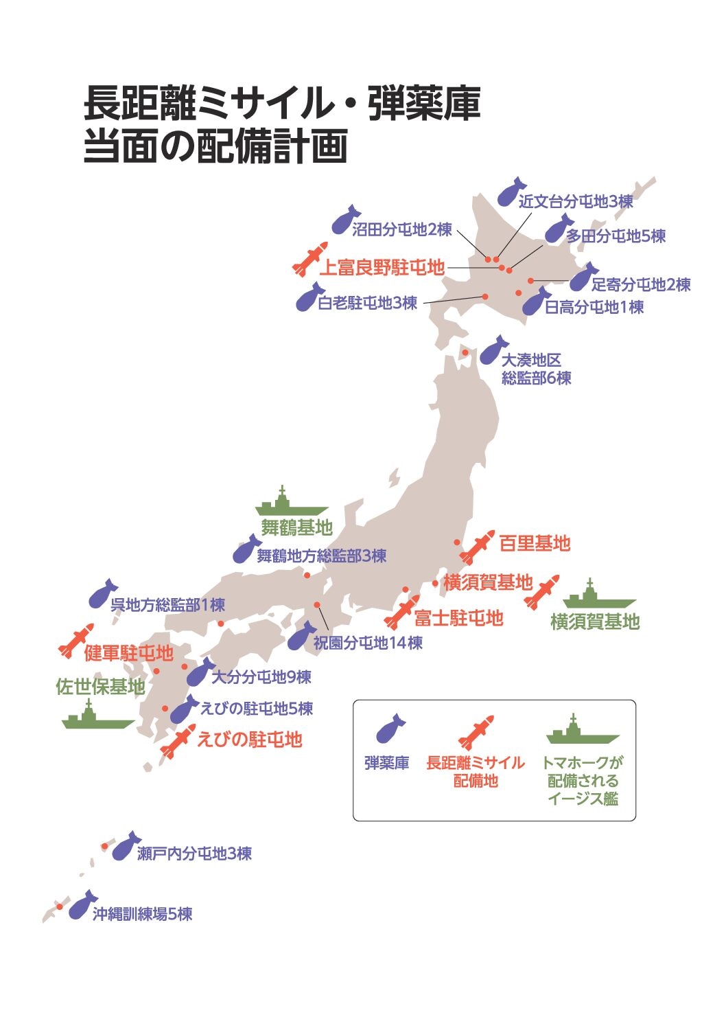 • 長距離ミサイル・弾薬庫 当面の配備計画