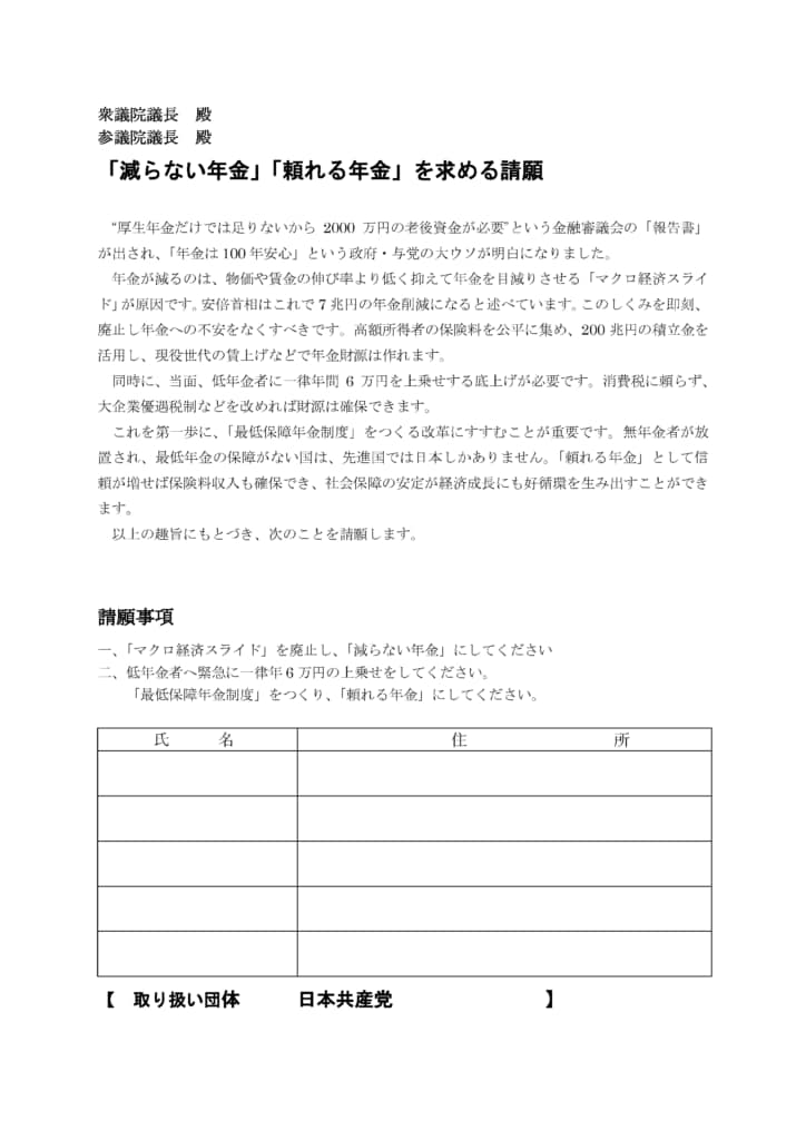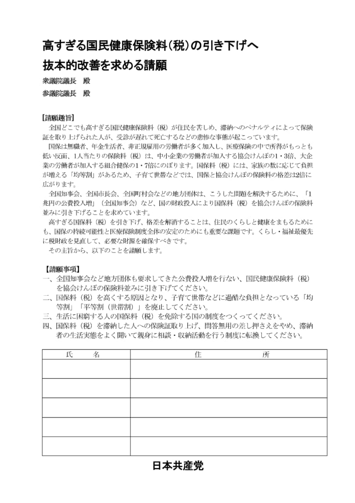 【送り先】日本共産党中央委員会もしくは中央社会保障推進協議会(〒110-0013 東京都台東区入谷1-9-5 日本医療労働会館5F)