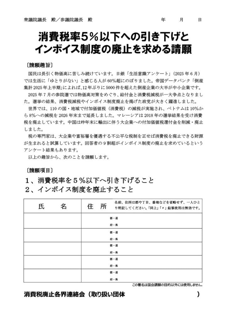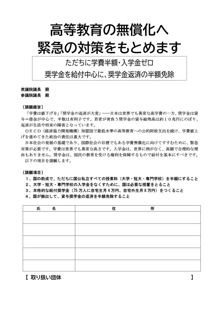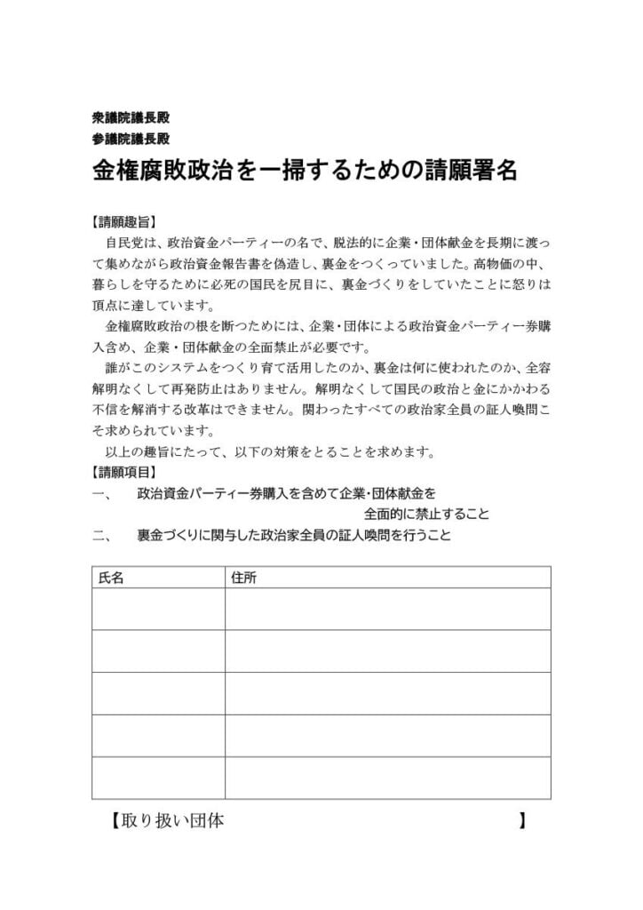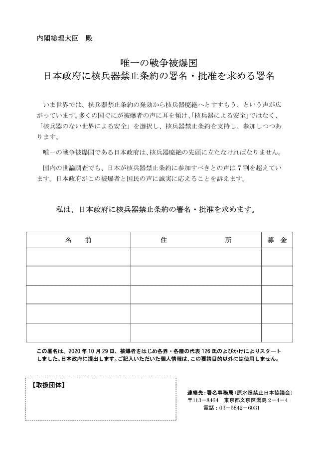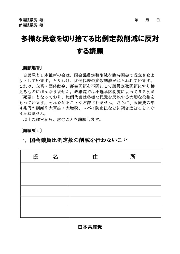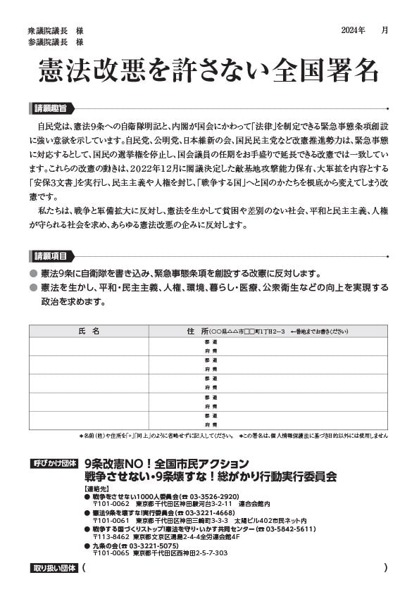 - (2)署名の複写やFAX、メールでの送信は無効です。直筆で書いていただいた署名を党事務所や党員に届けていただくか、日本共産党中央委員会または、各署名の送付先に郵送してください。