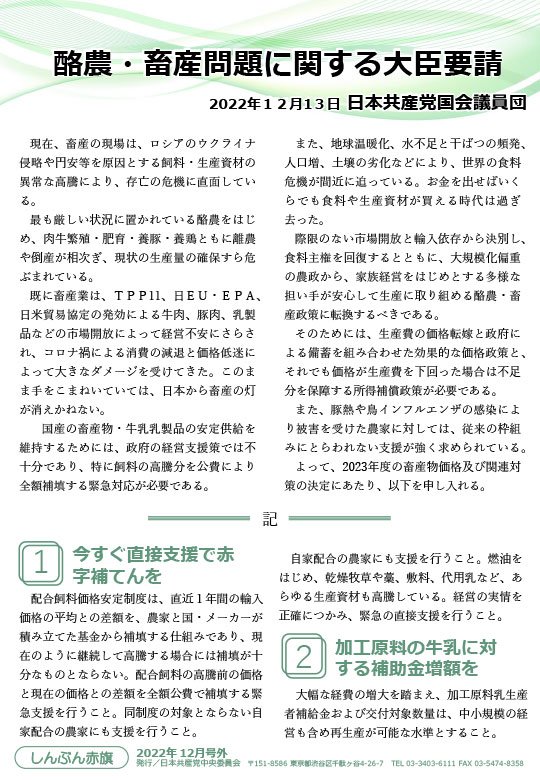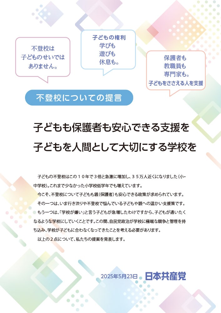 日本共産党中央委員会や国会議員団発表の政策・提言の全文PDFデータ。