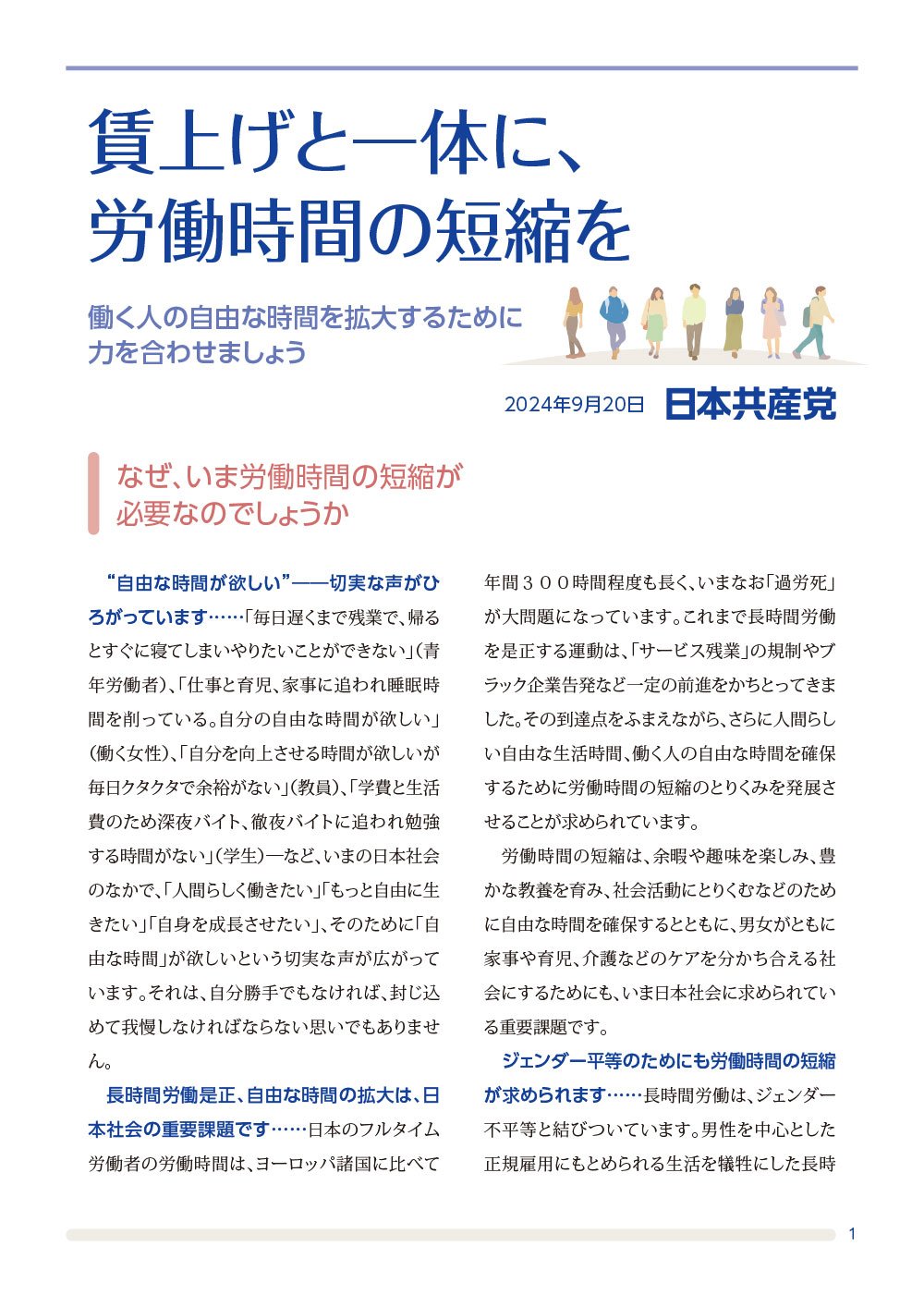 賃上げと一体に、労働時間の短縮を 働く人の自由な時間を拡大するために力を合わせましょう