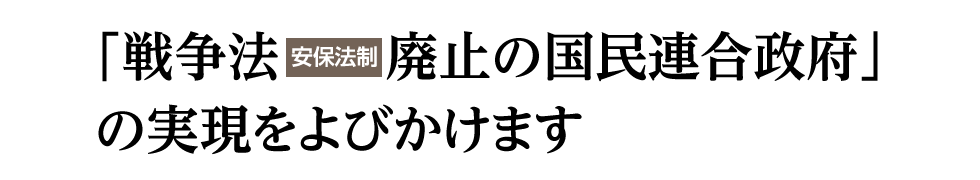 日本共産党は2015年9月19日、第4回中央委員会総会で「『戦争法(安保法制)廃止の国民連合政府』の実現をよびかけます」を決定し、志位和夫委員長が発表しました。
