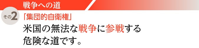 このような政府が、「違法な武力行使をした国を支援しない」といって、誰が信用できるでしょうか。米国に言われるがままに、違法な先制攻撃の戦争に参戦する─ここに集団的自衛権行使のいちばんの危険があります。