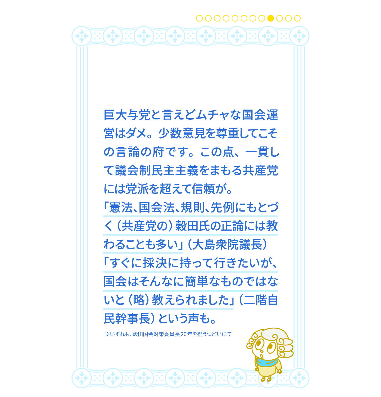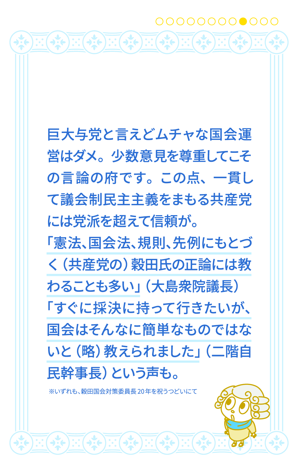 一貫して議会制民主主義をまもる共産党には党派を超えて信頼が。