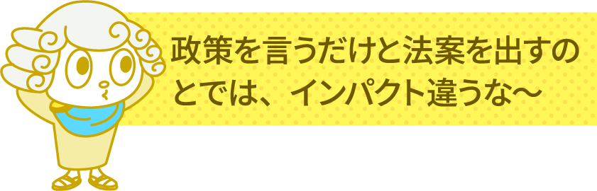 政策を言うだけと法案を出すのとでは、インパクト違うな~