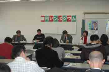 パネリストは、青年労働者や弁護士、日本共産党の若者仕事相談室の担当者、「しんぶん赤旗」日曜版記者ら多彩です。 「(食事は)水だけ、そうめん一束だけ、小麦粉を焼いたものだけの日もある」と話す非正規労働者の実態や、正規雇用を減らすなかでコストを抑えて収益をあげる大企業の雇用戦略などが報告されました。パネリストや参加者は、非正規労働者でつくる労組の活躍や公務員の雇用拡大など、行政が果たす役割などについての意見・提案も活発に出しました。 参加者の感想では、「福岡から青年の働く権利を守る運動をすすめたい」との発言がありました。北九州市八幡西区の男性は「このままでは、格差社会はますます広がる。『自己責任』という言葉でかたづけず、それを行政として補う視点を」と語り、来年一月告示の北九州市長選に立候補を表明している三輪俊和氏の青年雇用政策に期待を寄せました。 シンポジウムに先立ち実行委員会は、青年からアンケート調査を実施。そのなかには、障害者の作業所で正規職員として働いている一人暮らしの女性(25)が「月収は十三万円。残業は毎日一、二時間くらいありますが、サービス残業。給料が少ないので生活できずアルバイトもしています。今、生活するだけで精いっぱいで先行きがみえません」と報告するなど、深刻な労働実態が浮き彫りになりました。 ( 2006年12月26日「しんぶん赤旗」) 「現代のタコ部屋が日本のあちこちに」 /久留米市でシンポ「若者の雇用と労働を考えるシンポジウム」が十二月二日、福岡県久留米市で開かれ、五十人が参加しました。主催は、筑後地区労連、日本共産党筑後地区委員会などでつくる実行委員会。これは、筑後地区でも、非正規雇用や偽装請負など特に若者をめぐる労働環境はひどく、低賃金で将来が見えず、生活設計もたてられないという状況が慢性化しているなか、首都圏青年ユニオンの経験に学び、雇用問題について考えるために開かれました。 (「しんぶん赤旗」九州沖縄版に掲載)